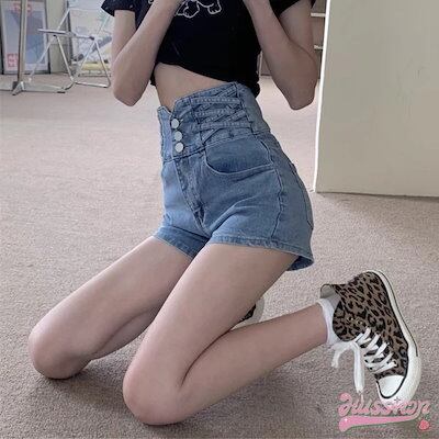 ボトムス パンツ デニム ショート レディース 夏 無地 ハイウエスト 足長効果 おしゃれ 2色展開 カジュアル お出かけ 休日 大きいサイズあり スリム