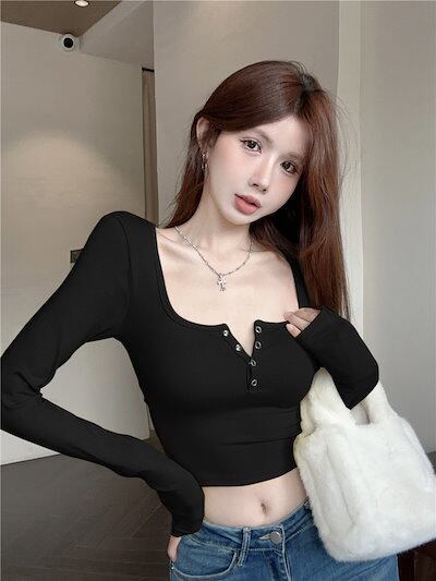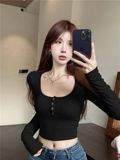 2024春夏 トップス 長袖 可愛い おしゃれ タイトフィット 韓国カットソー ラウンドカラー 重ね着丈 ネックスリーブ 女っぽ レディース Tファッション系 フェミニン きれいめ 色っぽ プリント