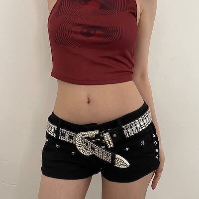 Q10限定 激?れ人気商品 ファッション ベルト 調整可能 y2kアメリカ ウォータドリル ベルト ホワイト