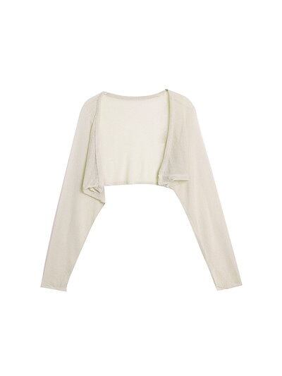 2024 春夏 ショート丈 薄手 カーディガン トップス 長袖 紫外線対策 UVカット冷房羽織り加工 きれいめ ライトニット オフィス OLネックカジュアルフレンチフェミニンファッション韓国レディース