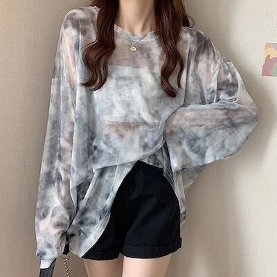 2024 夏 韓国 tシャツ ファッション トップス 薄手 韓国系 長袖 フィット シルエット プリント レイヤード 重ね着 肌見せ 女っぽハイフレンチタイト丈サイズ レディース T