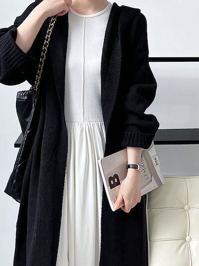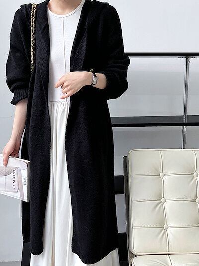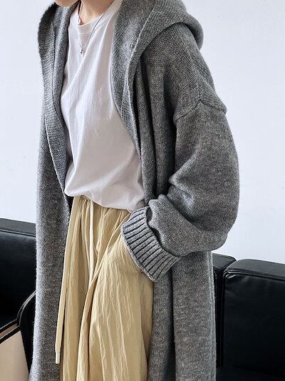 ニットカーディガン レディース 秋 冬 ロングカーディガン ニット カーディガン ロング丈 フード付き ゆったり ニット カーディガン 前開き アウター トップス ニット ロングカーディガン 羽織