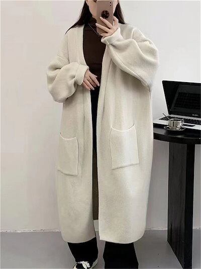 ロングカーディガン 秋冬 レディース ニットカーディガン ロング丈 ニット カーディガン トップス 大きいサイズ アウター 羽織 前開き ゆる 体型カバー 厚手 暖かい ゆったり キレイめ 大人 女性