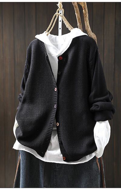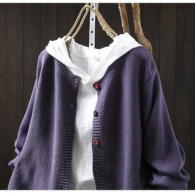 ニットカーディガン レディース 秋 冬 秋冬 長袖 コットンニットカーディガン カーディガン クルーネック ニット ゆるカーディガン ニットカーデ 羽織り 上着 ゆったり シンプル 無地 カジュアル