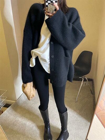 ニットカーディガン レディース 春秋 ニット アウター 大きいサイズ ゆったり 前開き カーディガン トップス ゆるカーデ 羽織 もこもこ 暖か 厚手 ふわふわ キレイめ ゆったり カジュアル