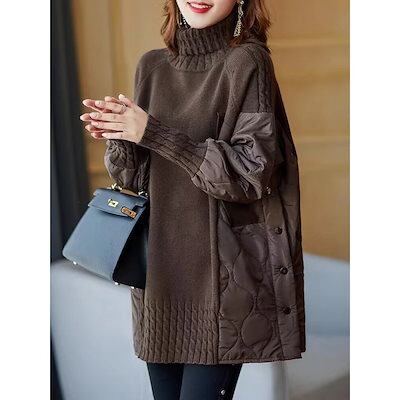 フェイクツーピース ゆったり セーターアウター ハイネックTシャツカットソー 厚手 秋冬 おしゃれ レディーストップス