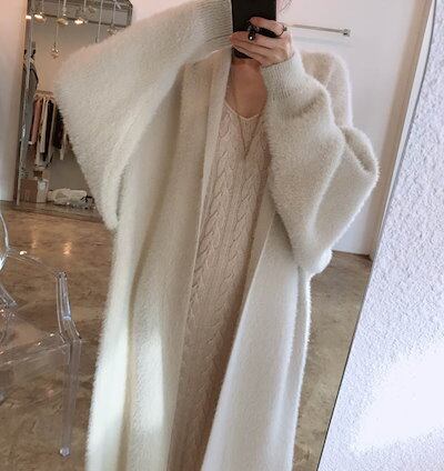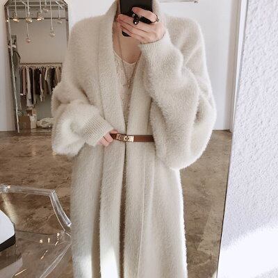 ニットカーディガン カーディガン ニット ロング丈 カーデ ロングカーディガン ロングカーデ コート レディース アウター もこもこ ロングニットセーター とろみ 膝下丈 リブ ゆったり 柔らか カジ