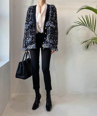 ジャケット レディース カジュアル ツイードジャケット ノーカラー カーディガン ショート丈 トップス 長袖 フェミニン 大人カジュアル おしゃれ お洒落 デイリー ママ 服 お出かけ オフィス
