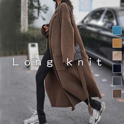 ロングカーディガン レディース カーディガン 秋 冬 厚手 長袖 ロング ニット 冬物 アウター ニットアウター コート 秋コート ロングコート ボリューム感 羽織り ルーズ きれいめ ゆったり 秋冬