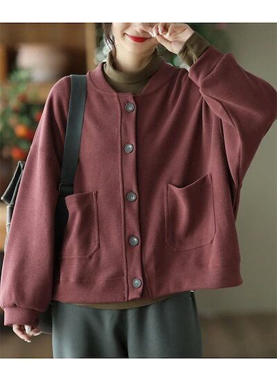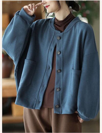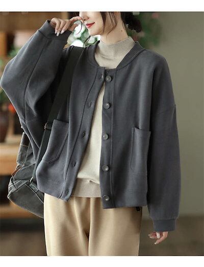 カーディガン レディース 秋 コート アウター 羽織 前開き スウェット ゆったり 体型カバー トレーナー ノーカラー 長袖 きれいめ おしゃれ かわいい 大人 お出かけ 暖かい 大きいサイズ グレー