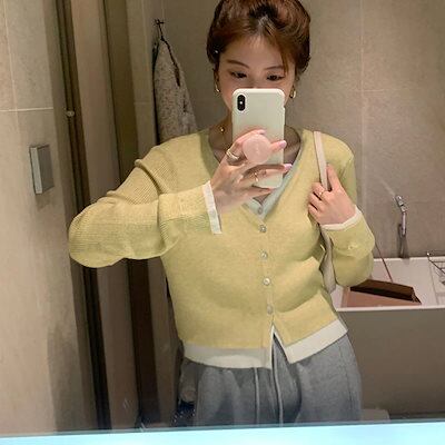 カシミヤタッチ Tシャツカットソー フェイクツーピース カーディガン レディース インナー ニット