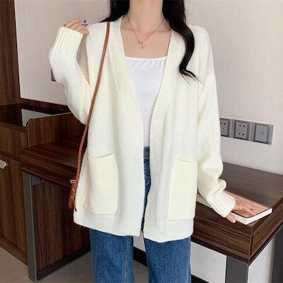 カシミヤタッチ Tシャツカットソー 秋 新作 セーター カーディガン レディース 気質 百掛け ニット アウター