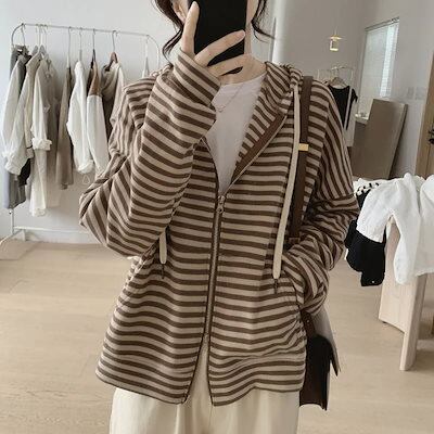 Tシャツカットソー フード付き パ一カ一 アウター レディース 春 新作 ゆったり 着やせ ダブルファスナー カーディガン トップス 百掛け アウター