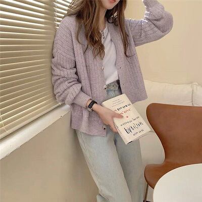Tシャツカットソー セーターカーディガン レディース ゆったり 韓国ファッション ラウンドネック ニット 秋 アウター