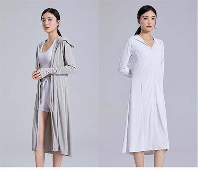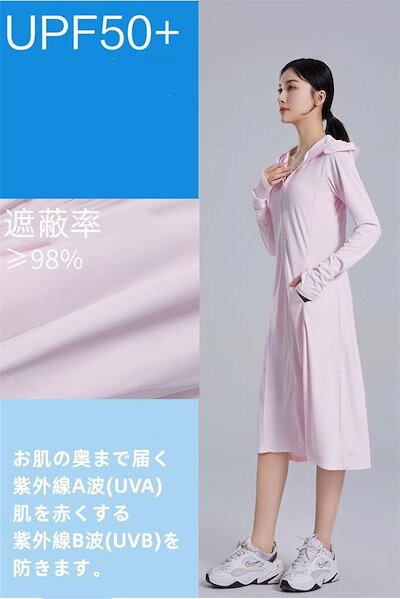 ロングパーカー パーカー レディース ジップアップ UVパーカー 春 夏 長袖 ロング丈 カーディガン UPF50+ 冷感 ひんやり UVカット ラッシュガード 羽織 速乾 薄手 透けない 指穴 フー