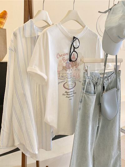 韓国ファッションレディース半袖tシャツ夏着痩せかわいいトップスTシャツ
