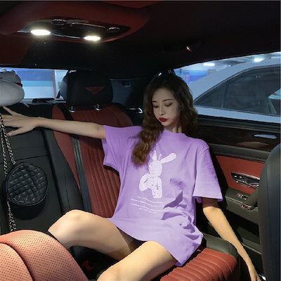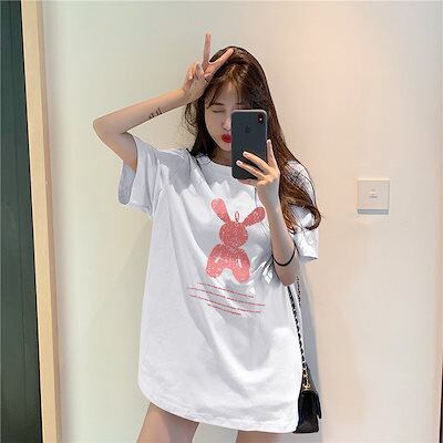 Tシャツ夏用ミドル丈ゆったりレディース丸首大きいサイズ半袖tシャツレディーストップス