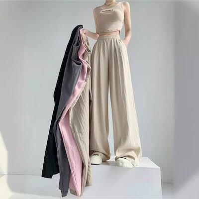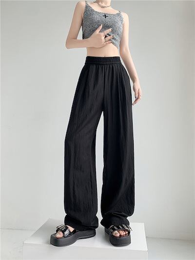 夏パンツ ゆったりハイウエストバージョン 着痩せロングパンツ