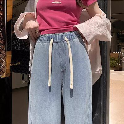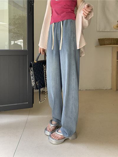 夏 ハイウエスト ゆったり スリム カジュアル シミター パンツ ロングパンツ