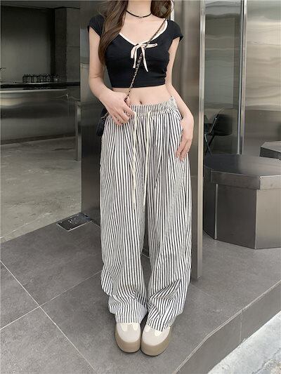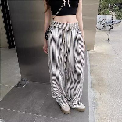 ロングパンツハイウエスト カジュアル ゆったりパンツ 薄手 ワイドパンツ