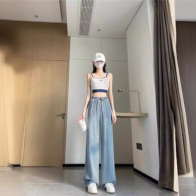 2024 夏 レディース ワイドレッグ パンツ ハイウエスト ロングパンツ