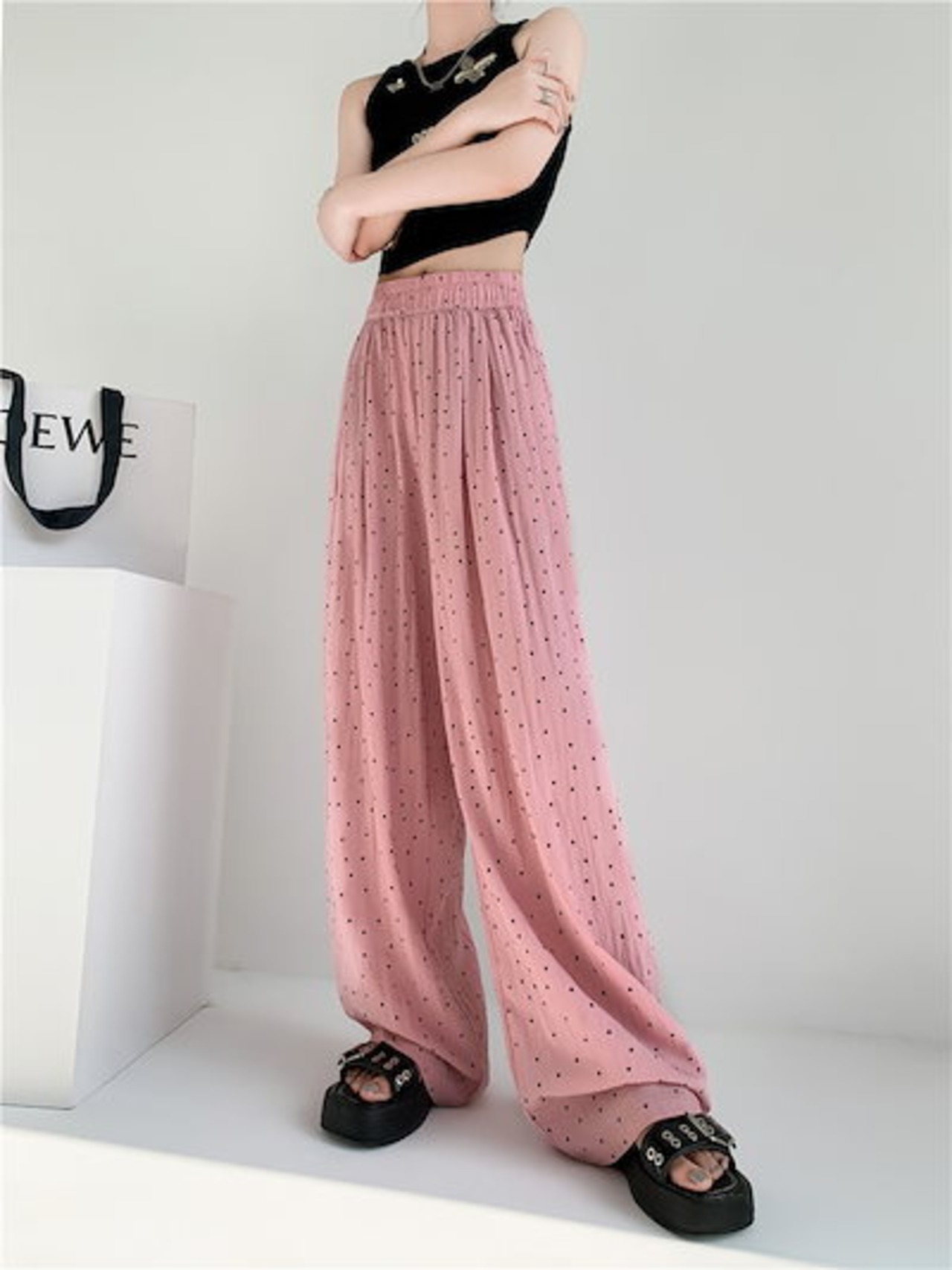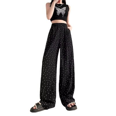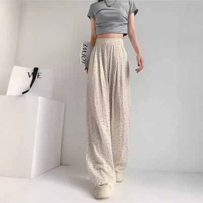 韓国 ワイドパンツレディース春夏薄氷シルク涼感パンツハイウエストドレープストレートパンツカジュアル日焼け止めパンツロングパンツ