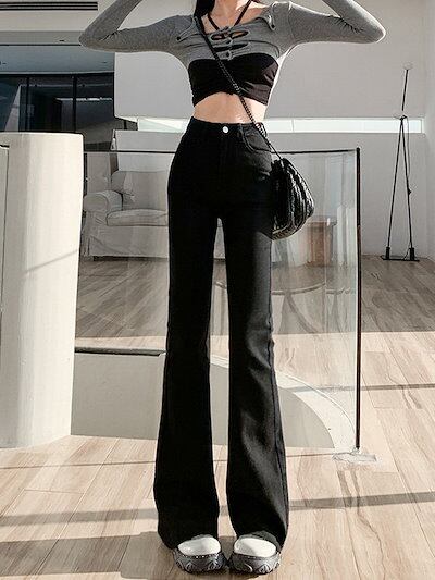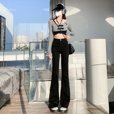 ロングパンツ レディース フレア レギパン デニム 薄手 夏 パンツ レギンス 細身 ストレッチ 脚長効果 フレアパンツ レギンスパンツ