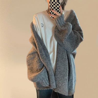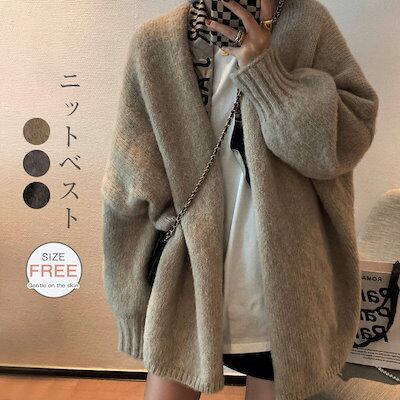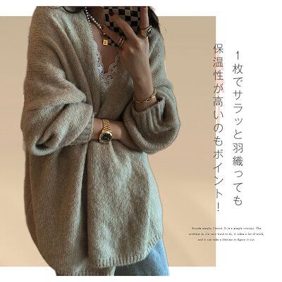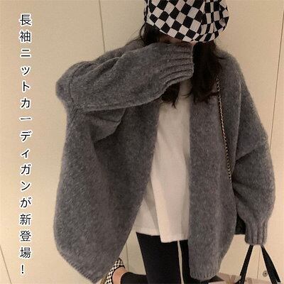 ニットカーディガン 厚手 レディース 春秋 ゆったり ボリューム袖 アウター トップス ニット ロングカーディガン 羽織 前開き もこもこ 暖か 厚手 ふわふわ キレイめ ゆったり カジュアル シ