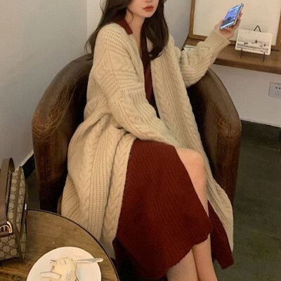 ロングカーディガン レディース 秋 冬 ニットカーディガン Vネック 無地 厚手 ロング丈 カーデ アウター カーディガン ロングカーデ 長袖 羽織り 冷房対策 体型カバー ゆったり シンプル カジュ