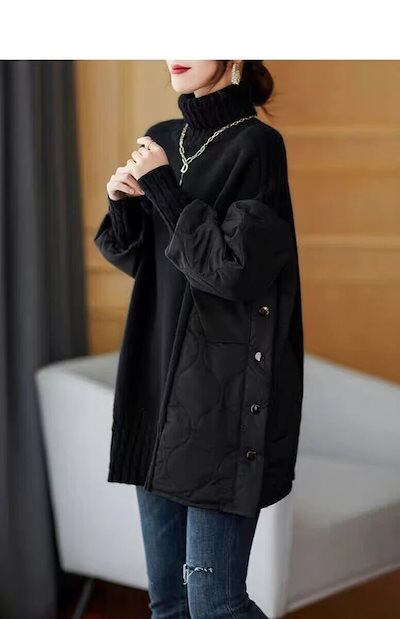 フェイクツーピース ゆったり セーターアウター ハイネックTシャツカットソー 厚手 秋冬 おしゃれ レディーストップス