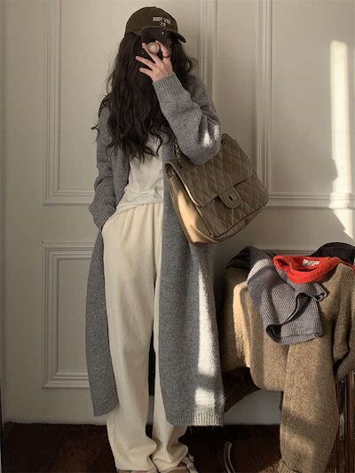 ロングカーディガン ニット コート アウター 羽織り 長袖 レディース 秋冬 前開き ゆったり 大人 エレガント フェミニン カジュアル シンプル 通勤 お洒落 きれいめ 20代 30代 40代