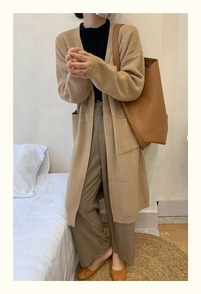 カーディガン ニットカーディガン レディース ロングカーディガン 前開き リブニット ロング丈 羽織り アウター ポケット付 長袖 コーディガン セーター 無地 シンプル カジュアル きれいめ かわい