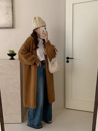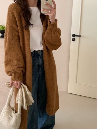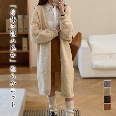 カーディガン ニットカーディガン レディース 秋 冬 春 ロングカーディガン ニットセーター ロング マキシ丈 アウター Vネック 長袖 ルーズ 羽織 カットソー ゆったり 長い 柔らかい 無地 シン