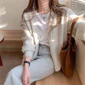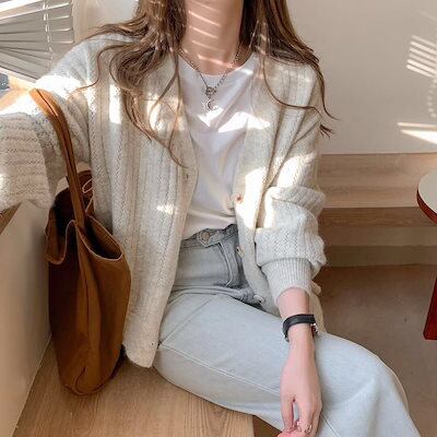 カシミヤタッチ Tシャツカットソー セーターカーディガン レディース ゆったり 韓国ファッション ラウンドネック ニット 秋 アウター