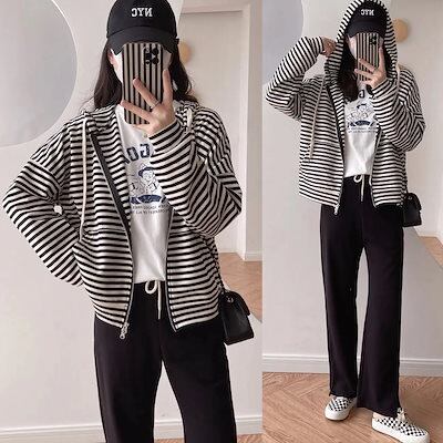 Tシャツカットソー フード付き パ一カ一 アウター レディース 春 新作 ゆったり 着やせ ダブルファスナー カーディガン トップス 百掛け アウター