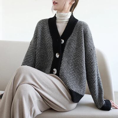 【本日限定】どんな体型にも!ニットカーディガン レディースセーター 長袖トップス レトロ 気質 通勤 百掛け 厚手メリヤス ベーシックニット 韓国ファッション