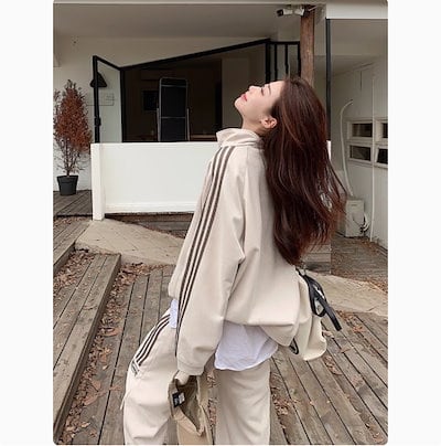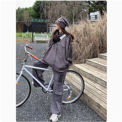 2024 春秋 2点セット トップス お出かけ 羽織り ショート丈 セットアップフルパーカーラウンドヘムルーズ サイド上下ボトムス ストレート系冬 ゆったりサイズワイドシルエットリラックストラック