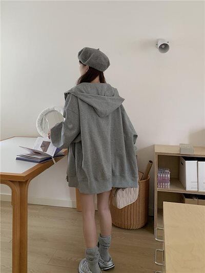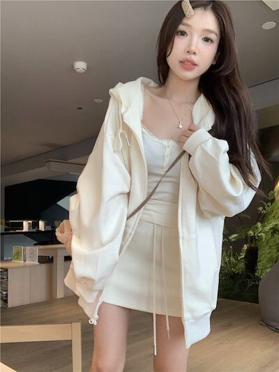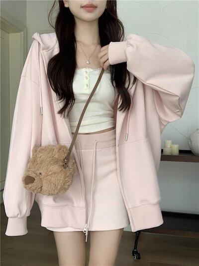 2024秋冬セットアップ アウター パーカー フード付き ジップ チャック 長袖 大きめサイズ ゆったり スカート ミニ丈 秋 白 おしゃれ かわいい 韓国ファッション レディース お出かけトラック
