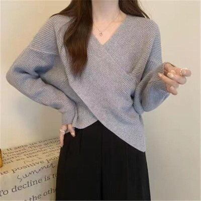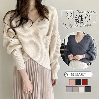 新作 ニット レディース トップス セーター クロス 暖か おしゃれ カジュアル ショット丈 セーター 厚手 伸縮性 無地 保温 細身