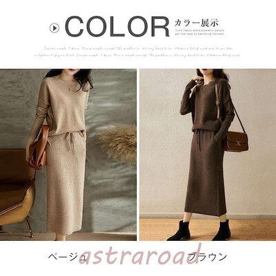 セットアップ レディース ニット カジュアル スカートスーツ 大きいサイズ ニットスーツ セーター 長袖 ニットスカート トップス ボトムス ロングスカート