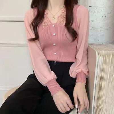 韓国ファッション秋冬人気カシミヤタッチ 異素材ニットトップス レディース 韓国 百掛けトップス ニットインナーVネックベーシックニットゆったりスウェット 長袖 無地リブニット30%までに制限