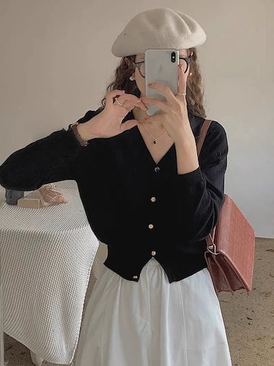 ベーシックニット 春と秋 短 無地 ニット レディース ジャンパー Vネック 長袖 トップス30%までに制限