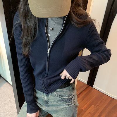 ベーシックニット シンプル ニット トップス レディース 秋冬 ジップ ジャンパー コート30%までに制限