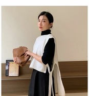 アシメニットベスト ベスト レディース ニット アシンメトリー ニット サイドリボン ケープ ノースリーブ トップス アシメ セーター 重ね着 レイヤード モード 前後差 デザイン カジュアル おしゃ