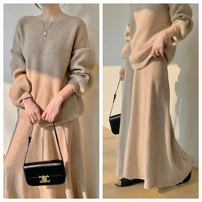 ニット セットアップ 秋冬 レディース ニット スカートスーツ セーター&スカート 2点セット キレイめ 前開き 秋冬セット ロングスカート ゆったり ニットスカート 女性 カジュアル 通勤 OL 体