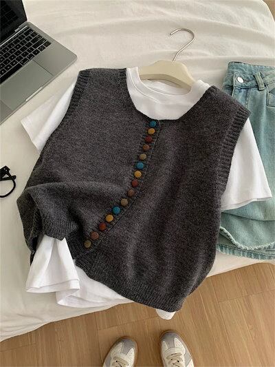 ニットベスト レディース 秋 冬 ニット トップス クルーネックベスト ショート丈 ノースリーブ 無地 シンプル レイヤード 重ね着 セーター 大きいサイズ ゆったり 体型カバー カジュアル 大人可愛