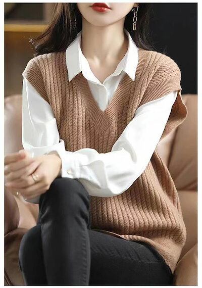 ベスト レディース vネック ニットベスト 無地 ノースリーブ タンクトップ ケーブル編み ニット トップス ショート丈 セーター 袖なし 重ね着 レイヤード ゆったり シンプル 大人 カジュアル お