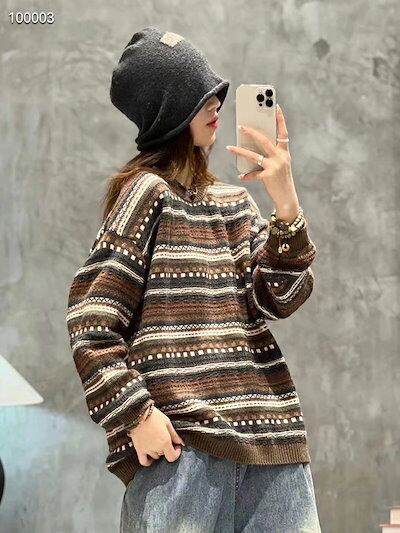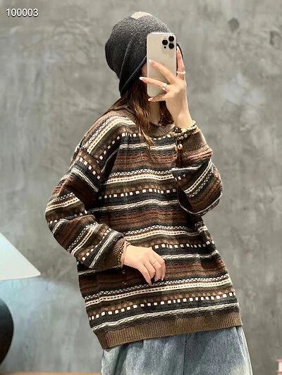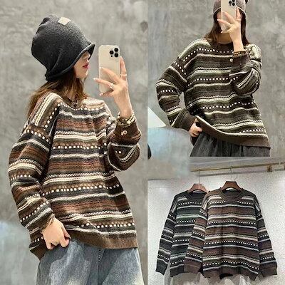 セーター ニット レディース ニットカットソー 秋冬 セーター ノルディック柄 厚手 長袖 プルオーバー ニット クルーネック フレア キレイめ ストレッチ 防寒 大きいサイズ 春 秋 冬 インナー