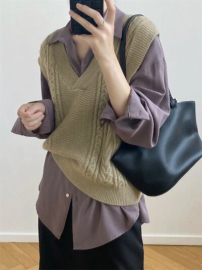 ニットベスト レディース ケーブル編み ベスト Vネック ベスト ニット トップス ノースリーブ オフィス OL 通勤 セーター 普段着 レイヤード 重ね着 ゆったり 大きいサイズ 体型カバー オー