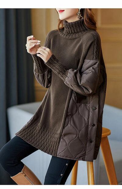 チュニック ニット レディース セーター ハイネック ニット チュニック 秋冬 大きいサイズ 異素材 切替 ニット タートルネック トップス きれいめ ゆったり 体型カバー 柔らか 厚手 防寒 暖か